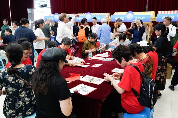 現場還設置了月餅、剪紙、棕編、紅木雕刻、書法、烙畫等非遺體驗項目,參與者在沉浸體驗中感受著傳統技藝魅力。